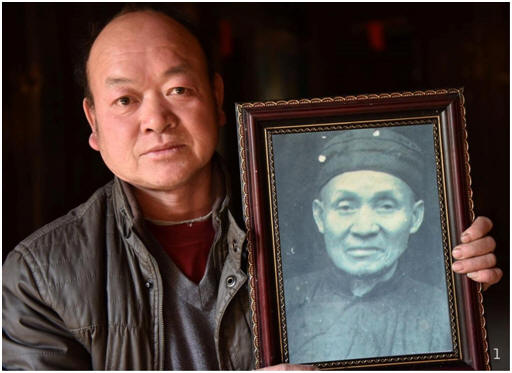 ↑ Photograph of Xianhua and her husband Qingshan taken in the 90’s (left photo). Photograph of Qingshan and her deceased wife’s reincarnator Runxue (the little girl) taken in the 2017 (right photo by He Bin). (Chapter 1, case #11)