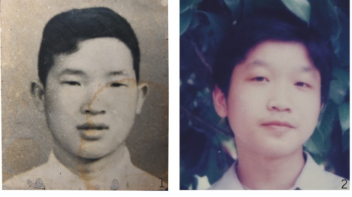 ↑ Photograph of  Xianhua and her husband Qingshan taken in the 90’s (left photo). Photograph of  Qingshan and her deceased wife’s reincarnator Runxue (the little girl) taken in the 2017 (right photo by He Bin). (Chapter 1, case #11)