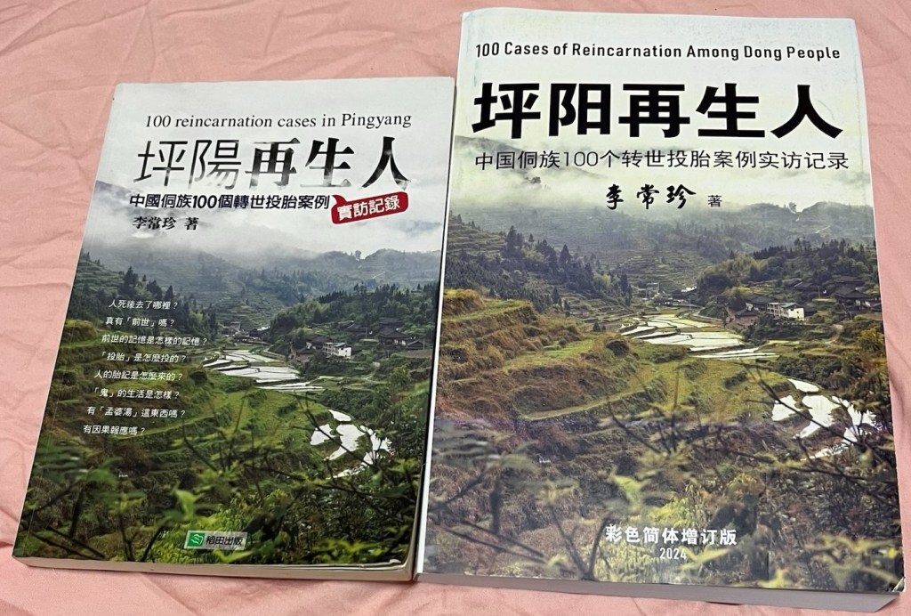 《坪陽再生人:一百個侗族轉世訪談案例》,這本書由李常珍先生2016年深入中國湖南和廣西交界侗族居住區實地考察後寫出的紀實文學作品。本書包含坪陽及周邊幾十個侗族山寨的100名再生人採訪案例,寫作完全忠於當事人原意,本書文字可以和全程採訪視頻互勘。